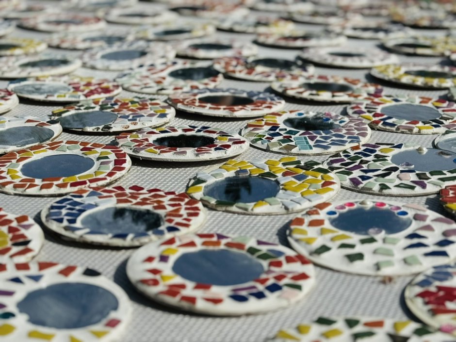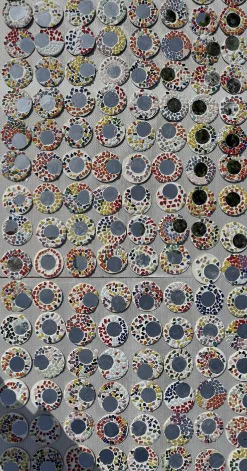 Wat is het prachtig geworden en wat zijn we trots op deze prestatie van de kinderen. Drie dagen lang werken aan de mozaïekspiegel. Totaal zijn er over de 170 spiegels gemaakt.