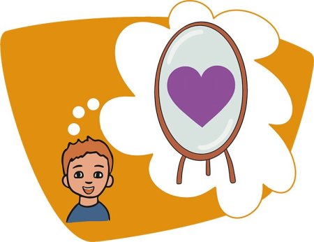 In het denkwolkje van deze dag is een spiegel met een hart te zien. God kijkt verder dan het uiterlijk, dan wat we in de spiegel zien. Hij ziet ons hart! Dat geldt voor het bijbelverhaal - niet de oudere, sterke broers worden als koning gekozen, maar de jongste, David. En het geldt ook voor ons - God kijkt naar ons hart.