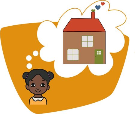 In het denkwolkje van deze dag is een huis te zien. Ruth verhuisde naar een ander land, maar waar ze ook heen zou gaan: bij God was ze welkom en veilig, daar mocht ze thuis zijn. Dat geldt ook voor ons, bij God zijn we welkom en mogen we thuis zijn.